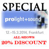 PLS Frankfurt 2014 Special in March: All Shows -20% discount Only in March we have a Pro Light + Sound Frankfurt 2014 Special Offer. 20% discount on all our Pangolin LD2000 & Beyond Shows. More than 30 Beamshows ready for your next Event.For our pricelist write us a mail to lasershow@visutek.at or contact us here. |